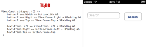 One gist of code that really makes this lovely is Frank's Easy Layout DSL - see http://praeclarum.org/post/45690317491/easy-layout-a-dsl-for-nslayoutconstraint