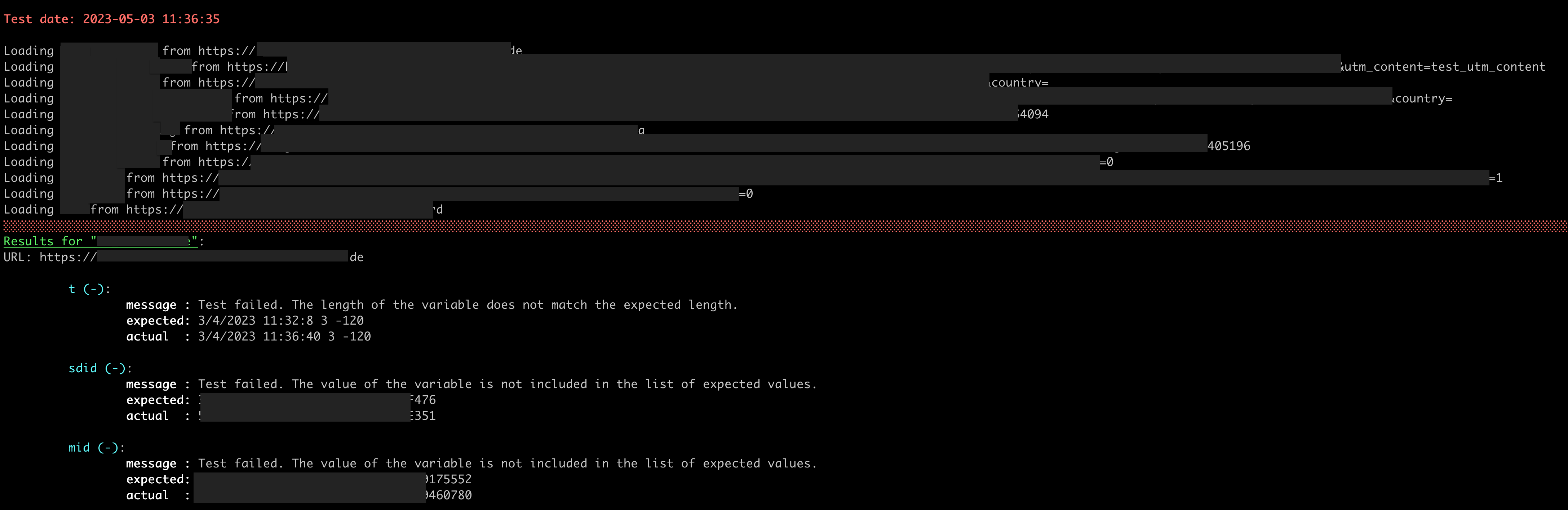 "example_setup": { "adobe_launch_host" : "assets.adobedtm.com", "adobe_analytics_host" : "customer.d3.sc.omtrdc.net", "container_before": "https://assets.adobedtm.com/launch-ABC123.min.js", "container_after": "https://assets.adobedtm.com/launch-ABC123-development.min.js", "urls" : { "Homepage": "https://example.com", "Searchresults": "https://example.com/search/q=keyword" } } -