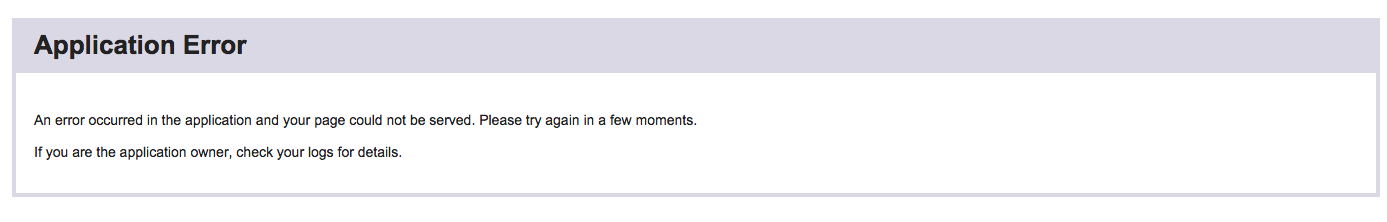 Application ErrororAn error occurred in the application and your page could not be served. Please try again in a few moments., double-check that you set aMASTER_KEYin the environment settings for that app. -