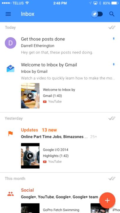 For example, if we are using an email app and we are listing the inbox folder, the promoted action might be composing a new message.